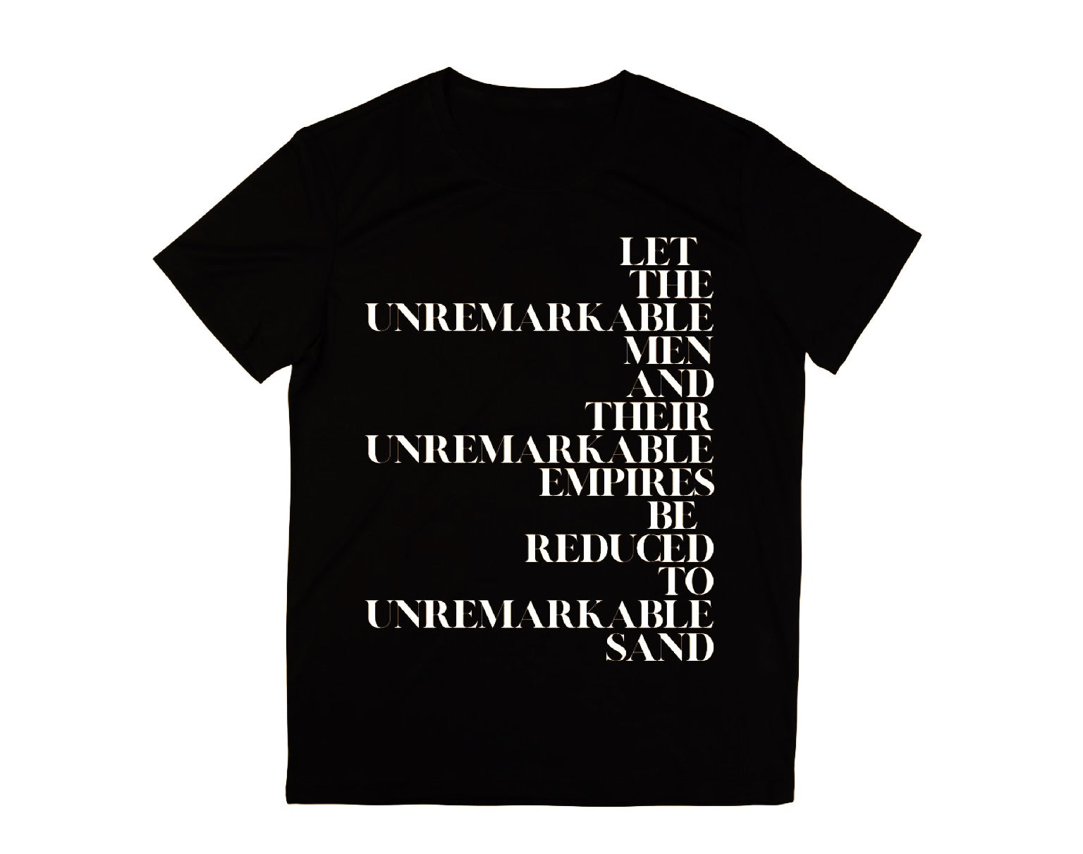 White Text: "LET THE UNREMARKABLE MEN AND THEIR UNREMARKABLE EMPIRES BE REDUCED TO UNREMARKABLE SAND”